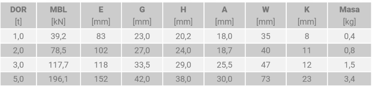 - Łatwe Oznaczenie: Trwale oznaczony maksymalnym dopuszczalnym obciążeniem (3T), symbolem producenta oraz zgodnością z normą, co umożliwia szybką identyfikację i kontrolę jakości.