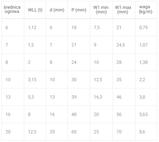 Łańcuchy są dostępne w szerokim zakresie średnic, od 6 mm do 20 mm, co umożliwia dobór łańcucha do konkretnych potrzeb i obciążeń. Ponadto istnieje możliwość zamówienia łańcuchów o specjalnych długościach, co pozwala na precyzyjne dostosowanie systemu podnoszenia do indywidualnych wymagań klienta. -