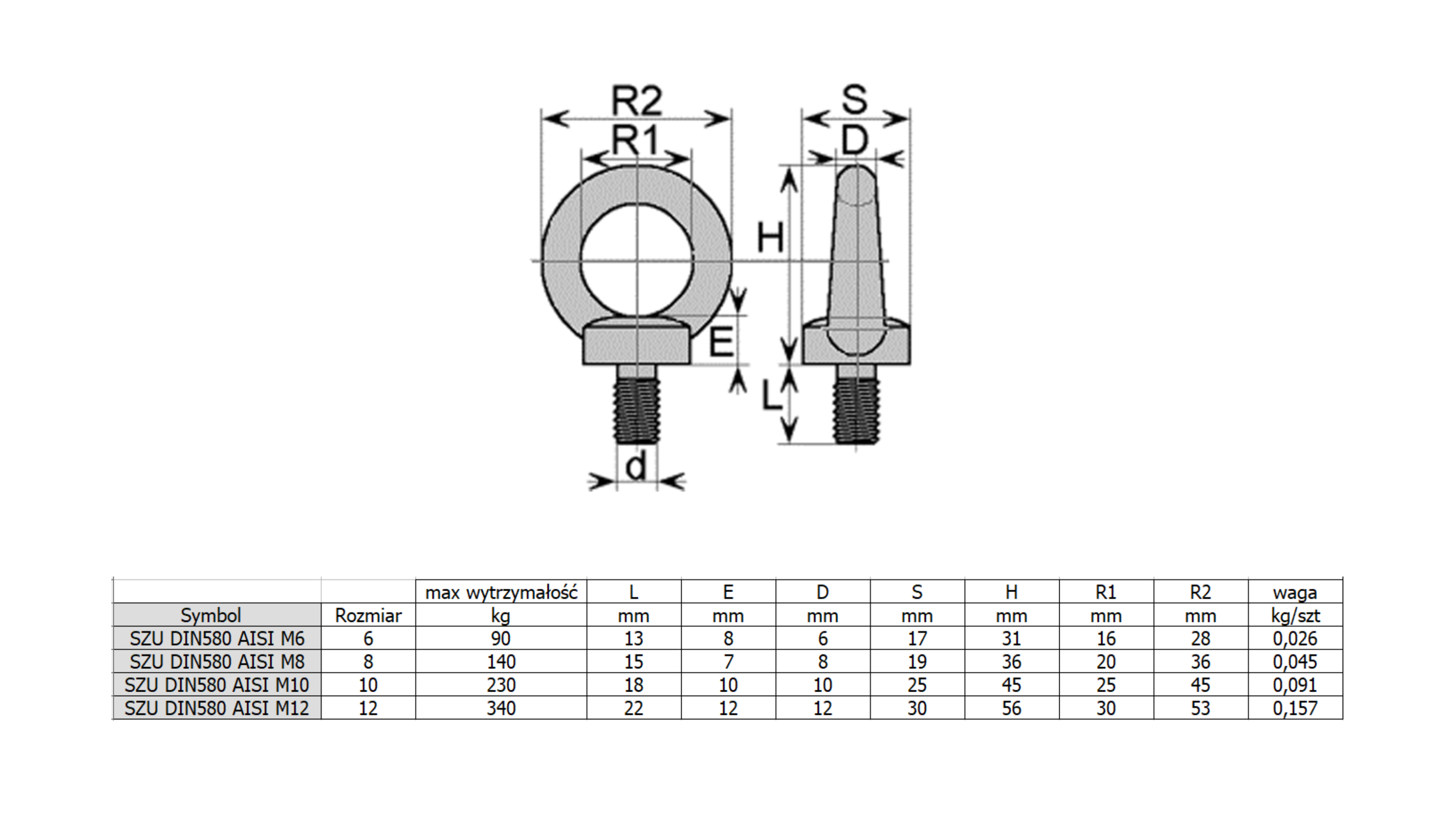 Śruba z uchem podobna do DIN 580 - Nierdzewna AISI