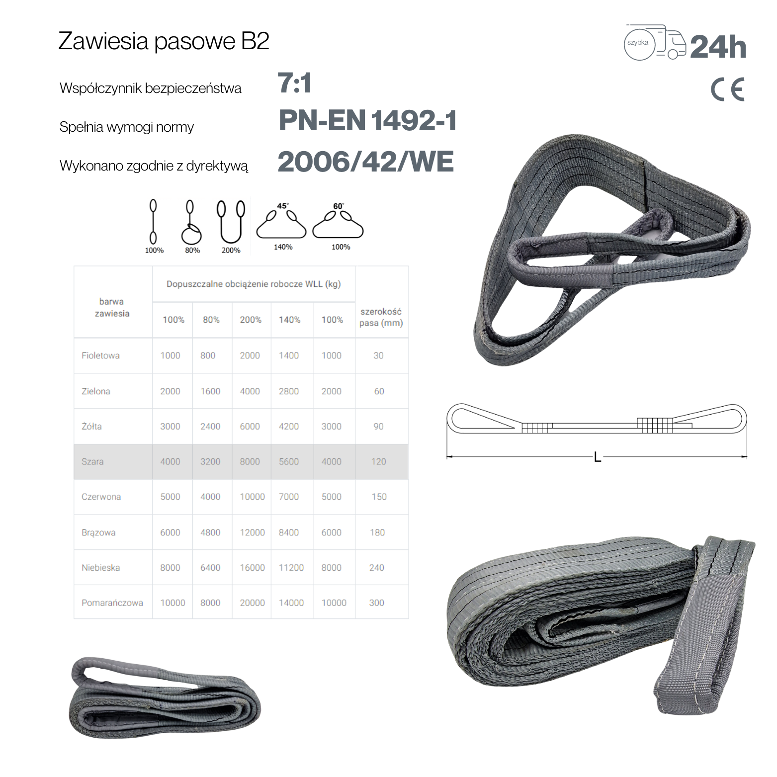 - Bezpieczeństwo: Zgodność z normą PN-EN 1492-1 oraz wysoki współczynnik bezpieczeństwa zapewniają niezawodność i ochronę podczas użytkowania.