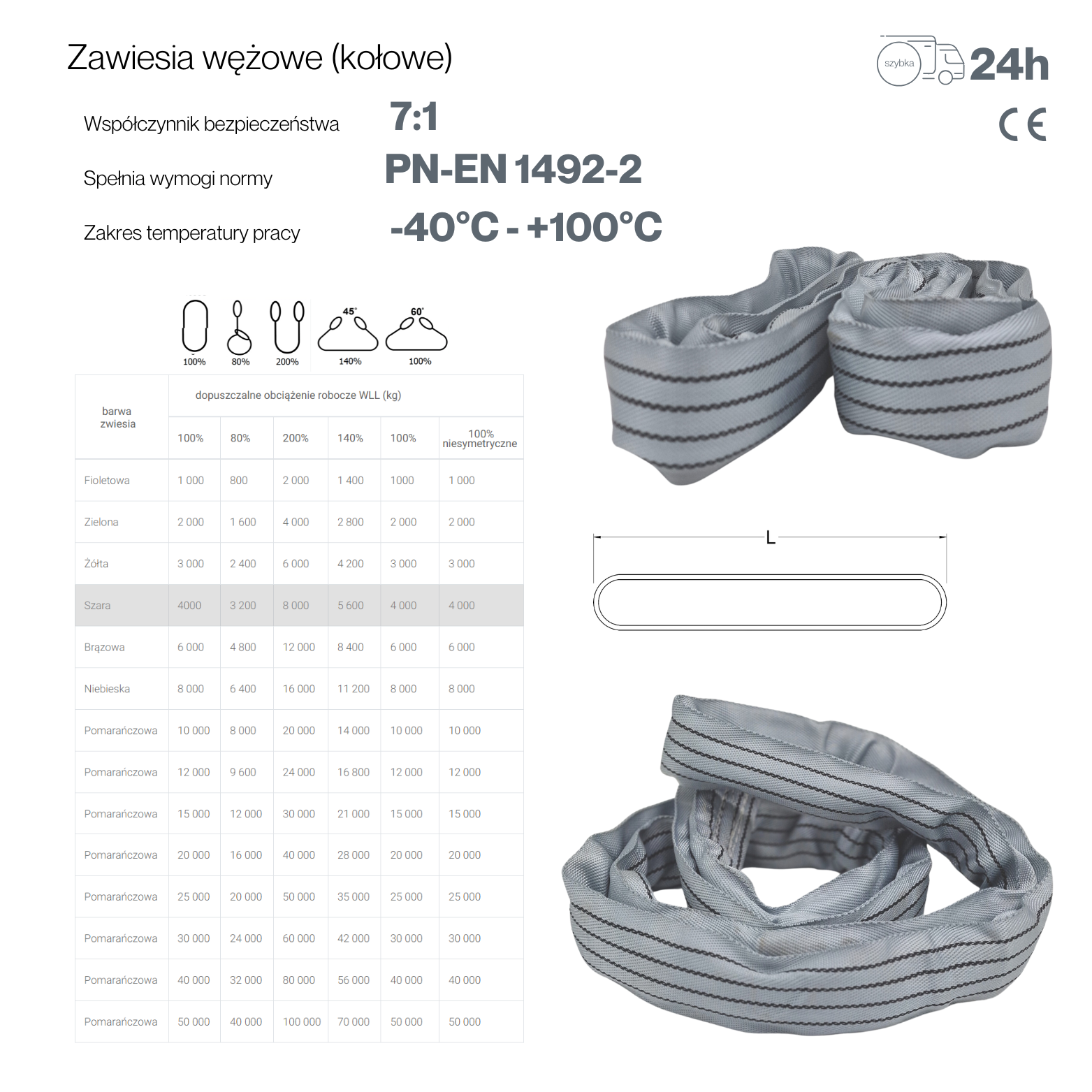Zawiesie Wężowe (Kołowe) 4T i długości roboczej 3,5M i obwodowej 7M